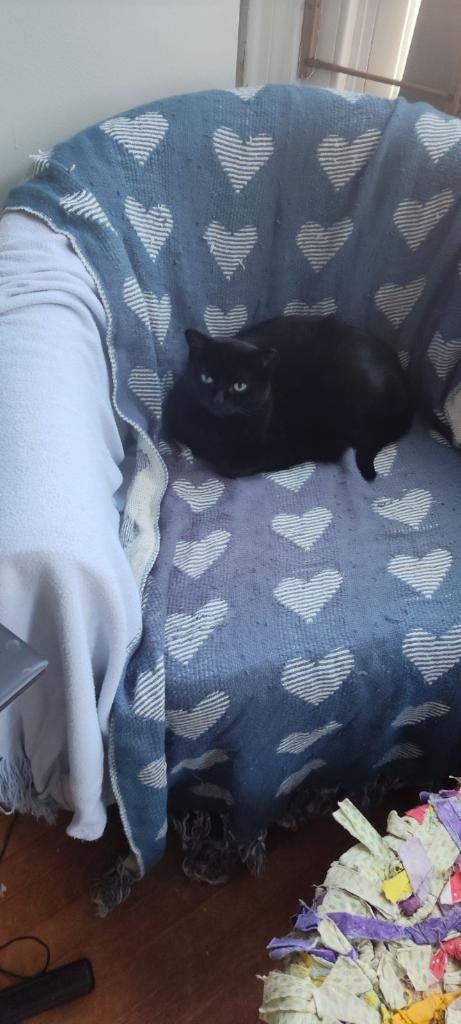 The cat knows what is right. The cat knows what is good. My cat is my witch’s familiar. I can tell if I’m doing the right thing because she is calm and sleeping and her fur is soft. If she is in a tense cat pose, sitting up and hunched up slightly, I am doing the wrong thing or something bad is about to happen.